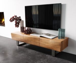 Meuble – TV New Live-Edge 145 cm acacia naturel 3 portes patin inox brossé