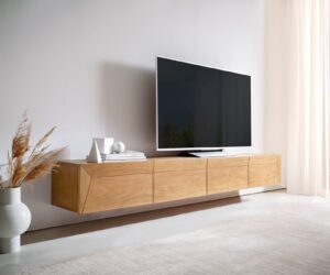 Meuble-TV Kayu 220 cm acacia naturel 4 portes flottantes