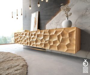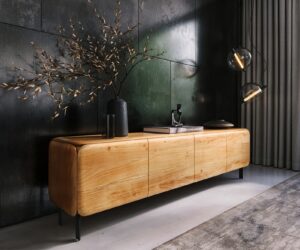 Buffet Solu 220 0cm en chêne naturel 2 portes 4 tiroirs fixation murale Face avant 3D