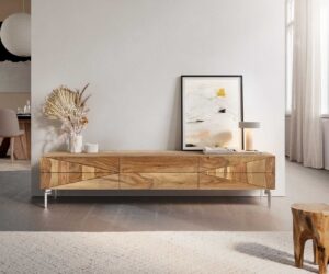 Meuble-TV New Live-Edge 240 cm acacia naturel 4 portes 1 compartiment pied en verre