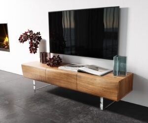 Meuble – TV New Live-Edge 145 cm acacia naturel 3 portes pied acrylique
