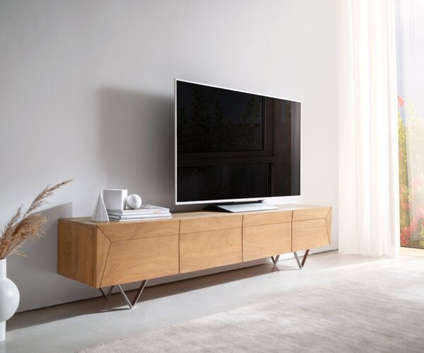 Meuble-TV Kayu 200 cm acacia naturel 4 portes pied en V