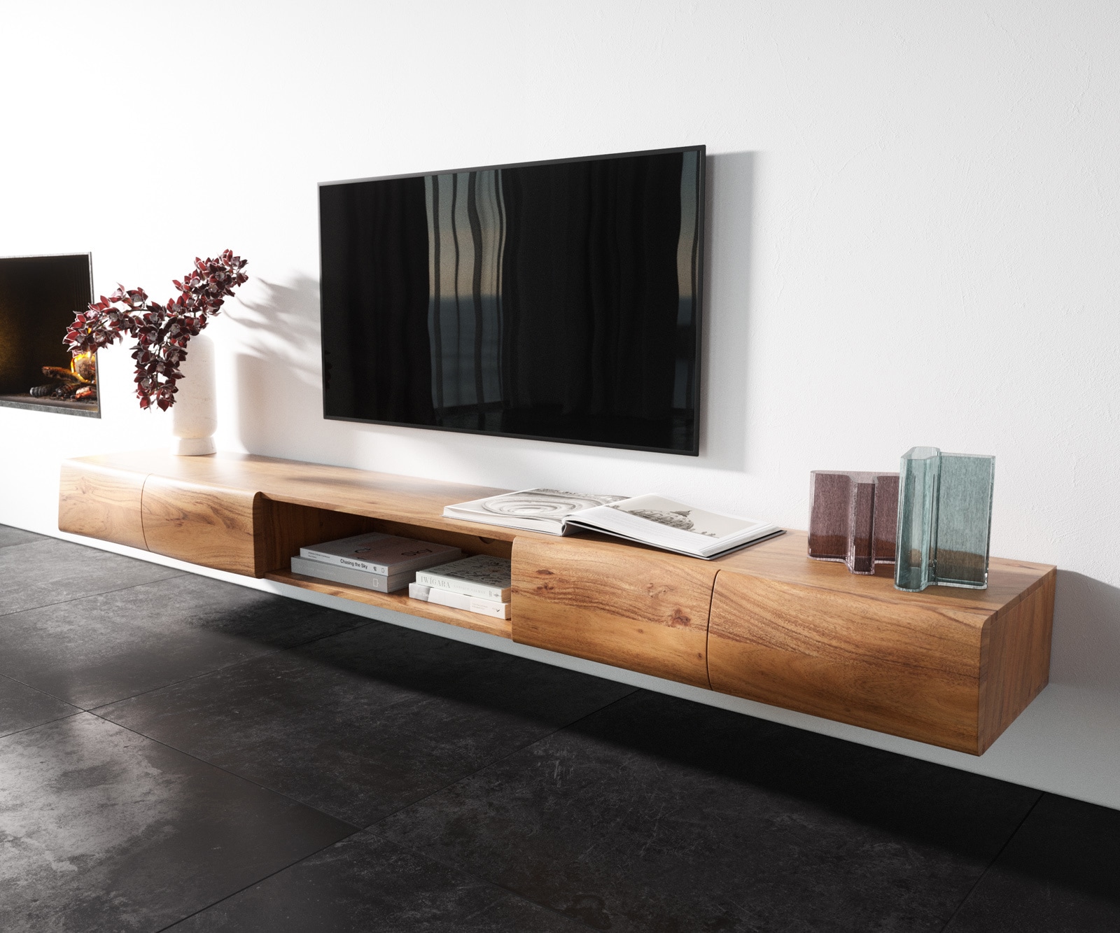 Meuble-TV Anaya 200 cm acacia naturel 4 portes suspendues