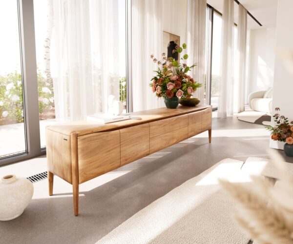 Meuble-TV Simcha 220 cm acacia naturel 4 portes 2 tiroirs