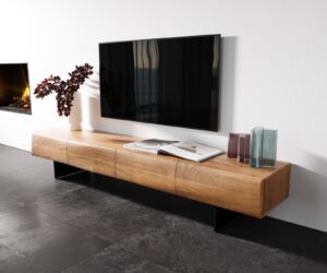 Meuble – TV New Live-Edge 200 cm acacia naturel 4 portes pied flottant métal noir