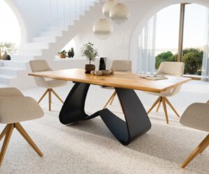 Table à manger Edge 280×100 XL acacia nature patin noir Live-Edge