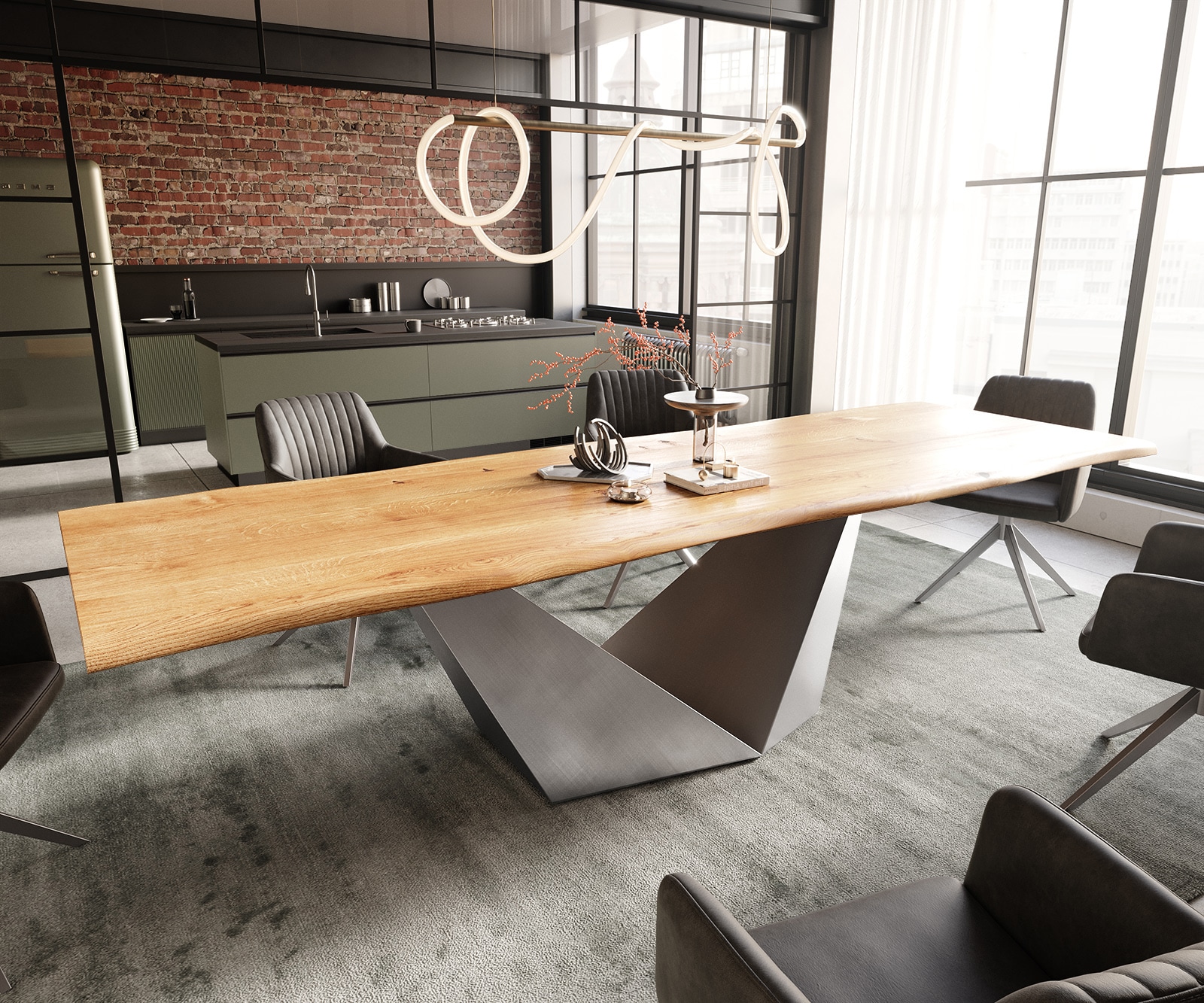 Table à manger Edge 300x100x4 chêne naturee Prisma métallique argent Live-Edge