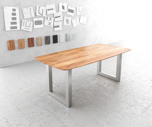 Table à manger Edge Boot 200×100 Acacia Naturel Acier Inoxydable Large Bord Suisse